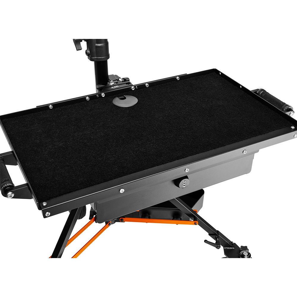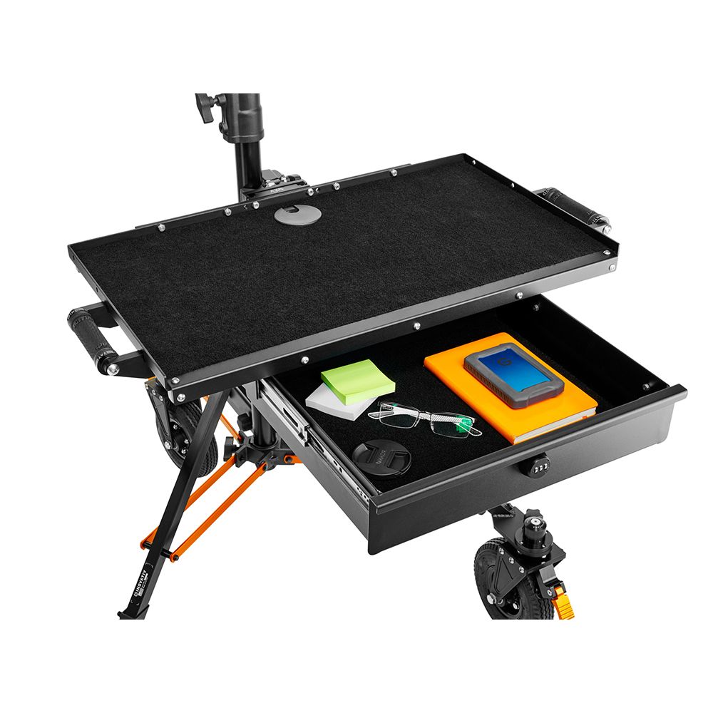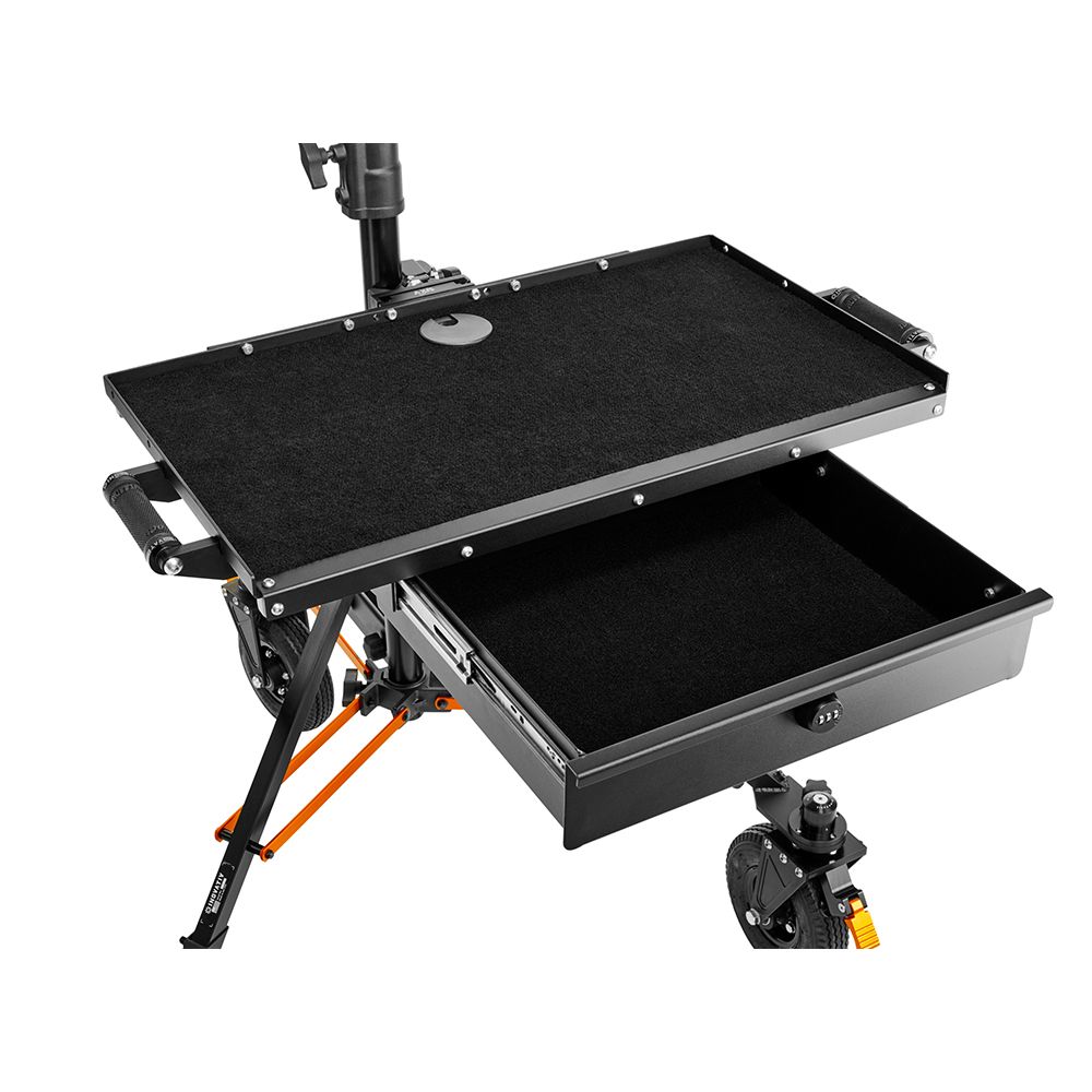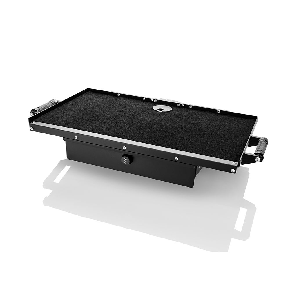 There are handles on both sides of the Top Drawer so that you can carry or relocate the WorkSurface Pro with ease. The top is finished with our black, durable outdoor marine carpet and a pass-through cable management hole to keep a cleaner organised work surface.
