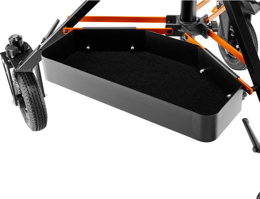 The AXIS Trough, measuring at 52cm x 24.75cm, slides over the legs of the AXIS Stand and clamps with four knobs that thread into the Trough. The Axis Trough is constructed of 5052 aluminium. With the signature durable black powder-coated finish and black carpet lining, the AXIS Trough is a nice touch to your workstation.