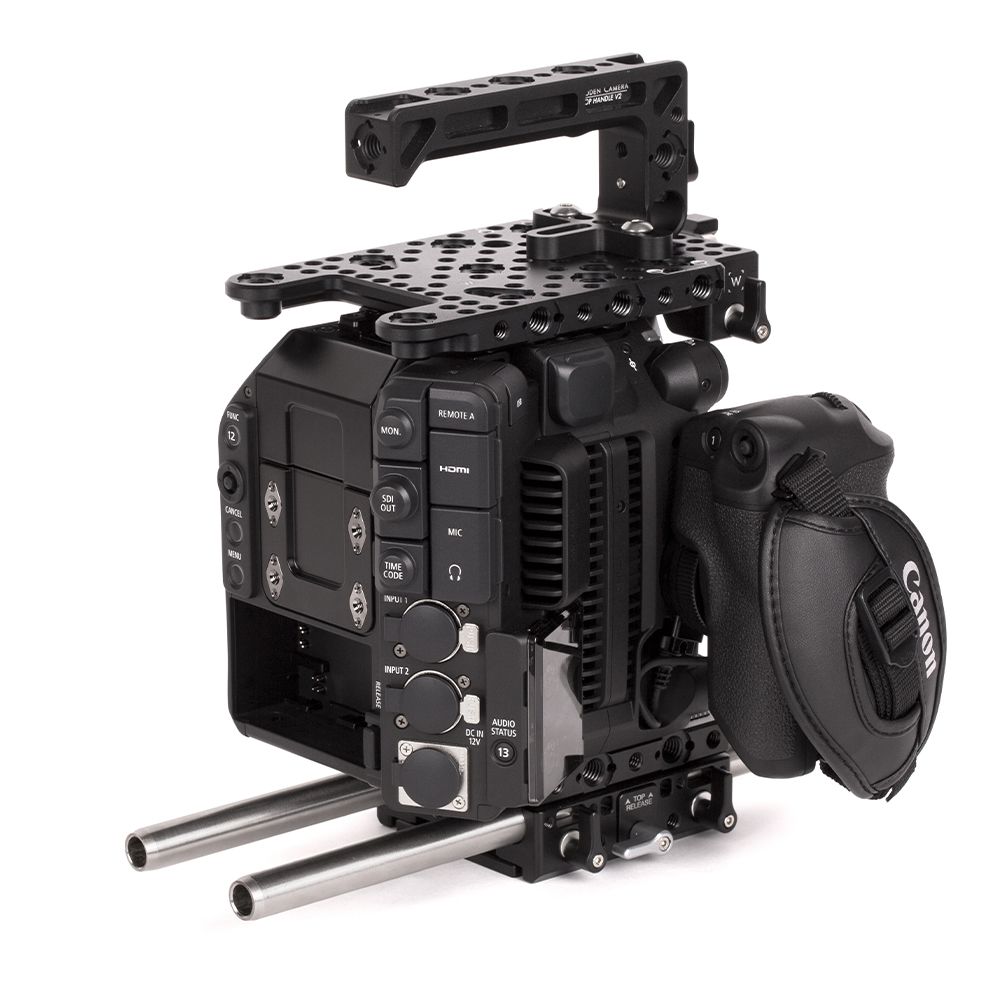 The Canon C500mkII Unified Accessory Kit (Base) is a camera support package designed for the Canon C500mkII camera. The C500mkII accessory package includes: Top Plate (Canon C500mkII), a top mounting cheese plate for camera accessory attachment that also includes our Canon LCD / EVF Bracket Adapter (C500mkII, C200, C200B), our Unified Baseplate (Canon C500mkII, C200, C200B, C700), a quick release baseplate that holds two 15mm Rod (12") at the correct lens height, and our Top Handle v2 for secure camera carrying.
