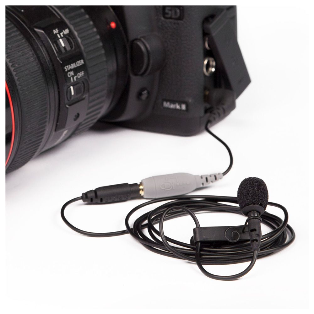 The SC3 is a high-quality shielded adaptor, designed to allow the smartLav to connect to 3.5mm TRS devices such as cameras and audio recorders. The gold-plated contacts are colour coded, with grey indicating the TRRS input.