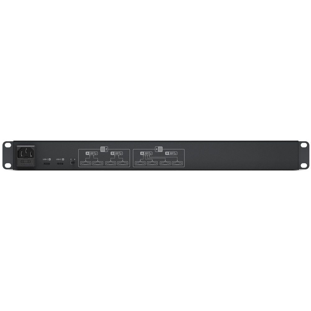 The Blackmagic Design MultiDock 10G is designed as a fast, 4-slot SSD dock that you can use to edit directly from your media disks. Up to four 2.5" disks can be accessed over a single 10 Gb/s USB Type-C interface, while an independent SATA driver chip on each disk slot ensures fast transfer speeds. You can connect directly to a Mac or Windows computer that has a USB Type-C port, and no software needs to be installed and used in the process. The MultiDock 10G works well with the optional HyperDeck Extreme 8K in various recording and playback workflows thanks to the matching USB Type-C External Disk port on the HyperDeck. The MultiDock has a 1 RU rackmount design and can be installed right on top of the HyperDeck Extreme in a rack or console for a seamless workflow. It can also be used simultaneously with two HyperDeck Extreme units (see below).