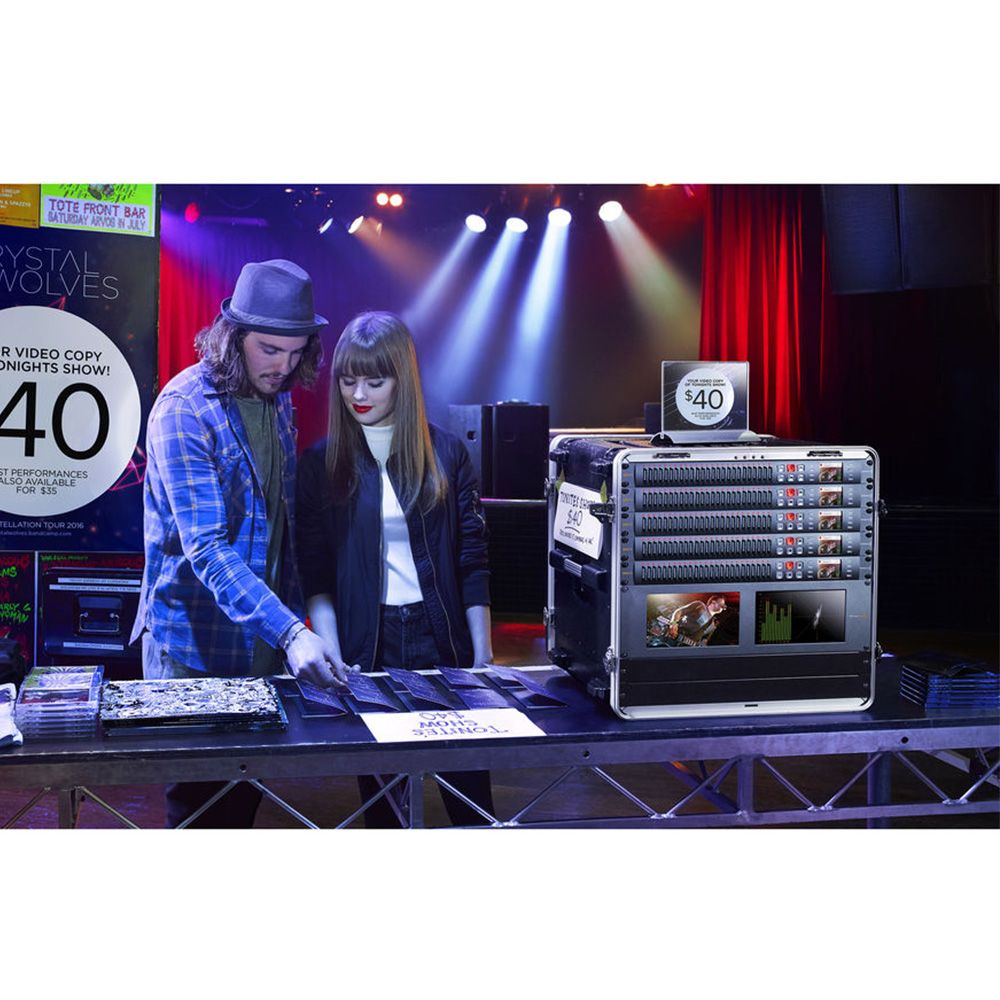 For the many events that require only a single camera and operator, the Duplicator 4K saves time and effort. If you're working alone, you can still produce multiple copies and sell content right off the bat. Simply plug the SDI output from your camera into the duplicator, start shooting and the Blackmagic Duplicator 4K will automatically start encoding and making copies. The Blackmagic Duplicator 4K recognizes the SDI start/stop commands from the camera so it automatically starts and stops recording along with the camera.