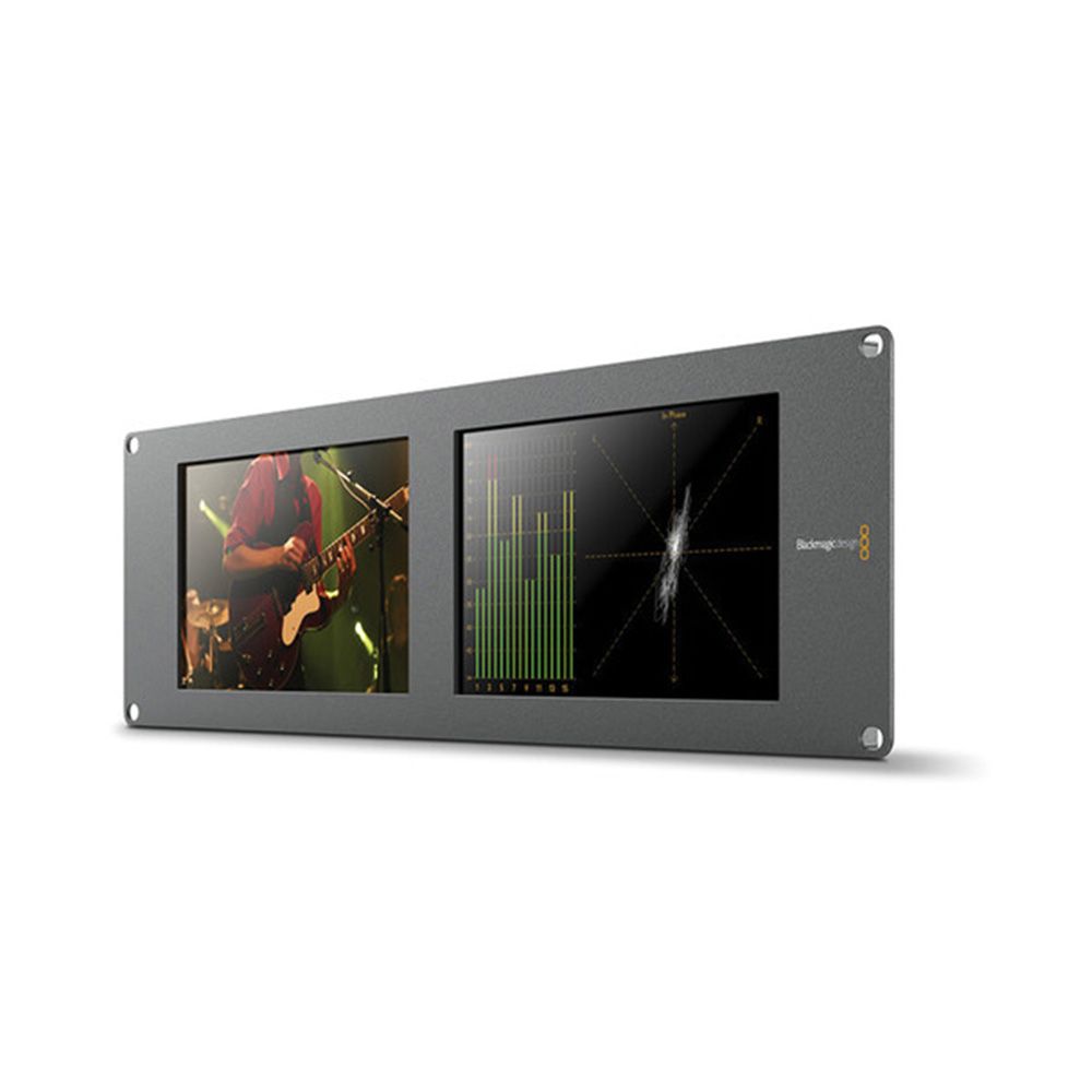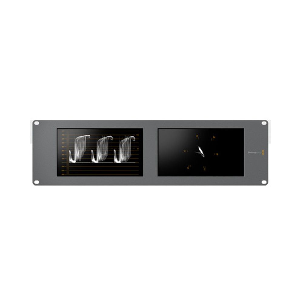 The Blackmagic Design SmartScope Duo 4K Rack-Mounted Dual 6G-SDI Monitors is a monitoring solution for studio and location productions, displaying video with resolutions up to 3840 x 2160 at 30p. It features two 8" monitors each with a loop-through SDI input and output. The inputs are auto-sensing/selecting so you don't have to worry about matching the input format; the monitor will display any supported format that you feed it. You can choose to select to display either the input video or one of six scope displays, while the input video passes through the monitor to downstreamed devices.