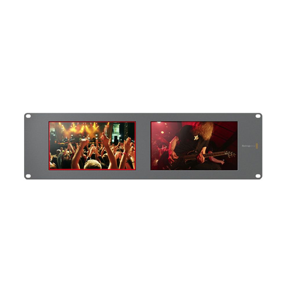 The Blackmagic Design SmartScope Duo 4K Rack-Mounted Dual 6G-SDI Monitors is a monitoring solution for studio and location productions, displaying video with resolutions up to 3840 x 2160 at 30p. It features two 8" monitors each with a loop-through SDI input and output. The inputs are auto-sensing/selecting so you don't have to worry about matching the input format; the monitor will display any supported format that you feed it. You can choose to select to display either the input video or one of six scope displays, while the input video passes through the monitor to downstreamed devices.