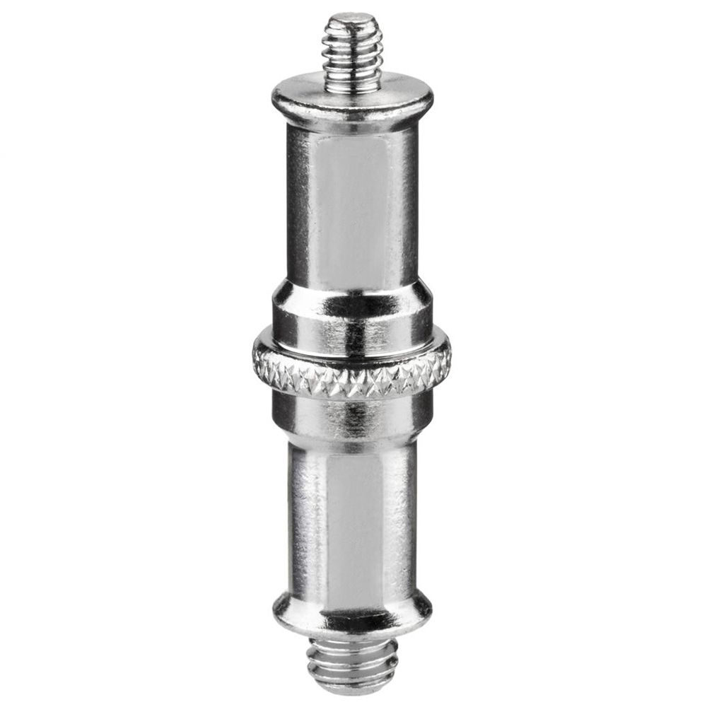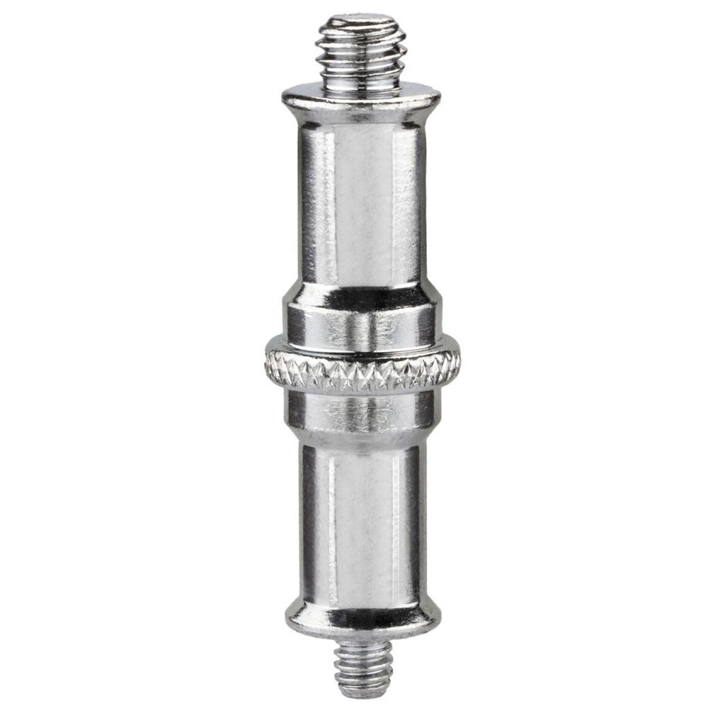 An essential accessory for mounting on Super Clamps or any piece of grip gear with female threads, the Double-Sided Flat Spigot has 1/4" threads at one end and 3/8" threads at the other for mounting onto clamping gear and support lights with a 5/8" receiver. The stainless steel pin is 2.5" long. With a flat edge on the barrel of the spigot to stop rotation on the mounting hole. This will allow the locking screw to have better grip.