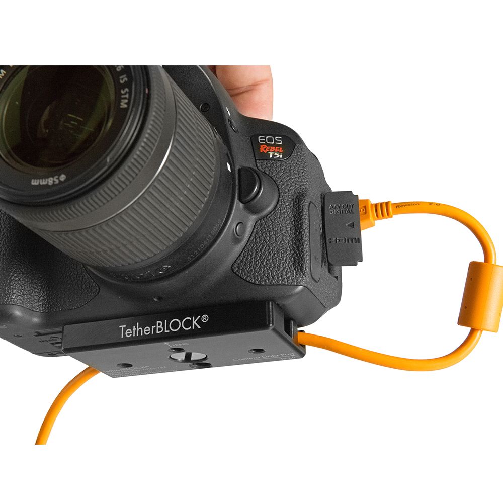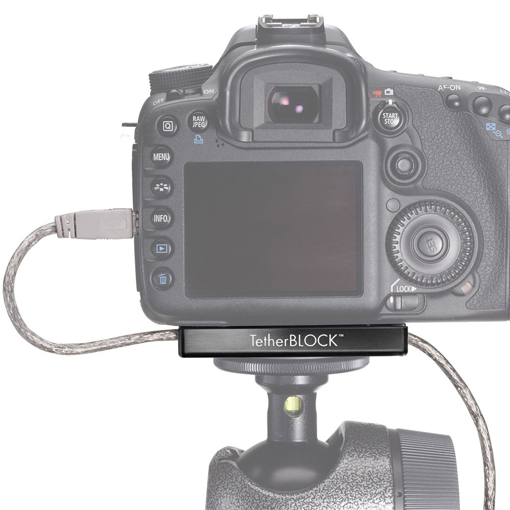 The TetherBlock MC Multi Cable Mounting Plate from Tether Tools is designed to prevent accidental removal of a cable from your camera's data ports, therefore preventing damage to the port and to your camera. By snaking a USB or FireWire, or HDMI cable through the TetherBLOCK's S-channel and attaching the TetherBLOCK to your camera's tripod mount you'll be able to shoot tethered to a computer without fear that a trip over the cable will damage the camera's sensitive data ports.