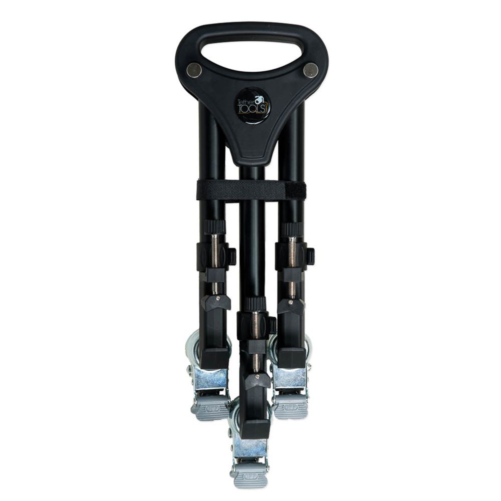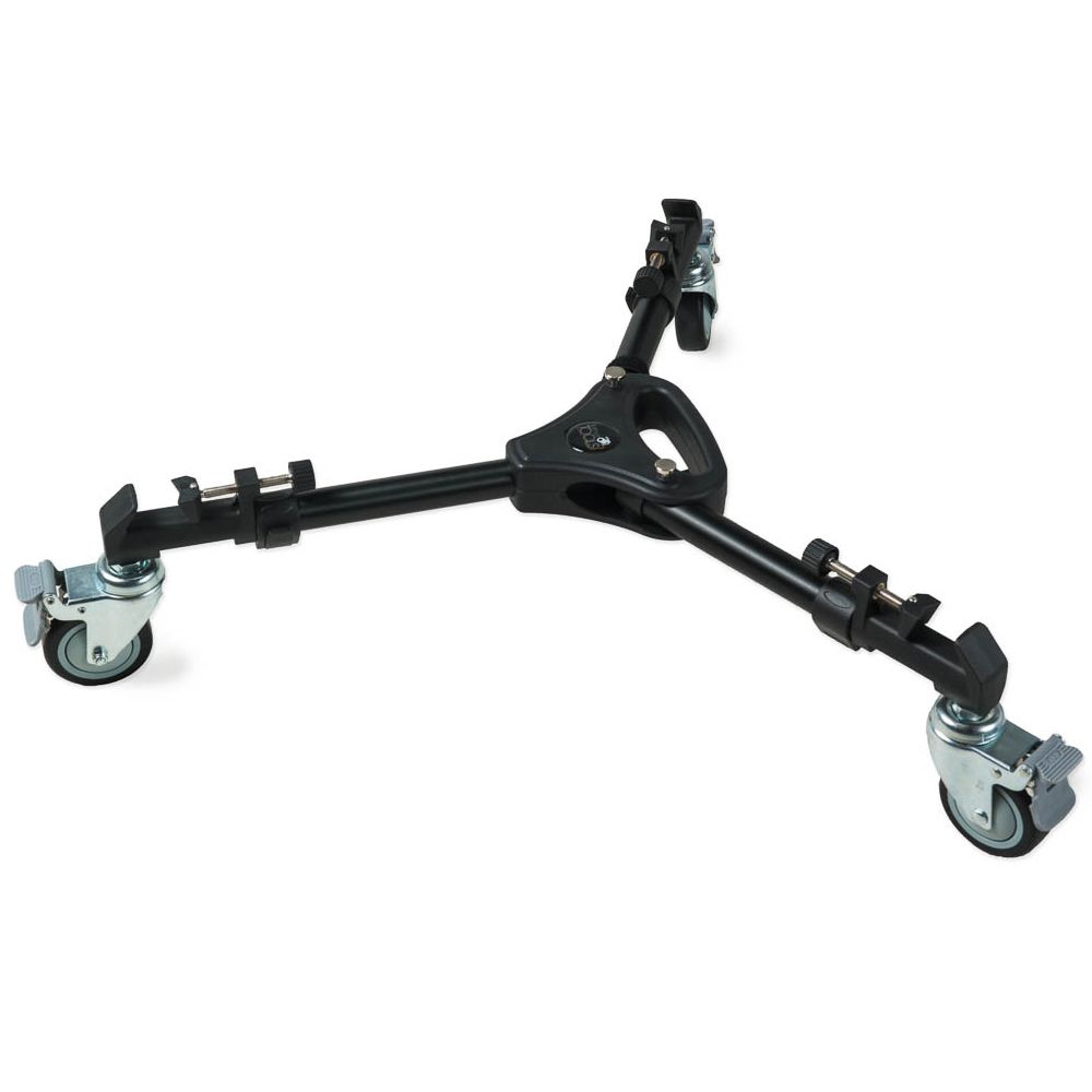 Easy-to-turn knurled tightening screws secure each tripod leg in the dolly.