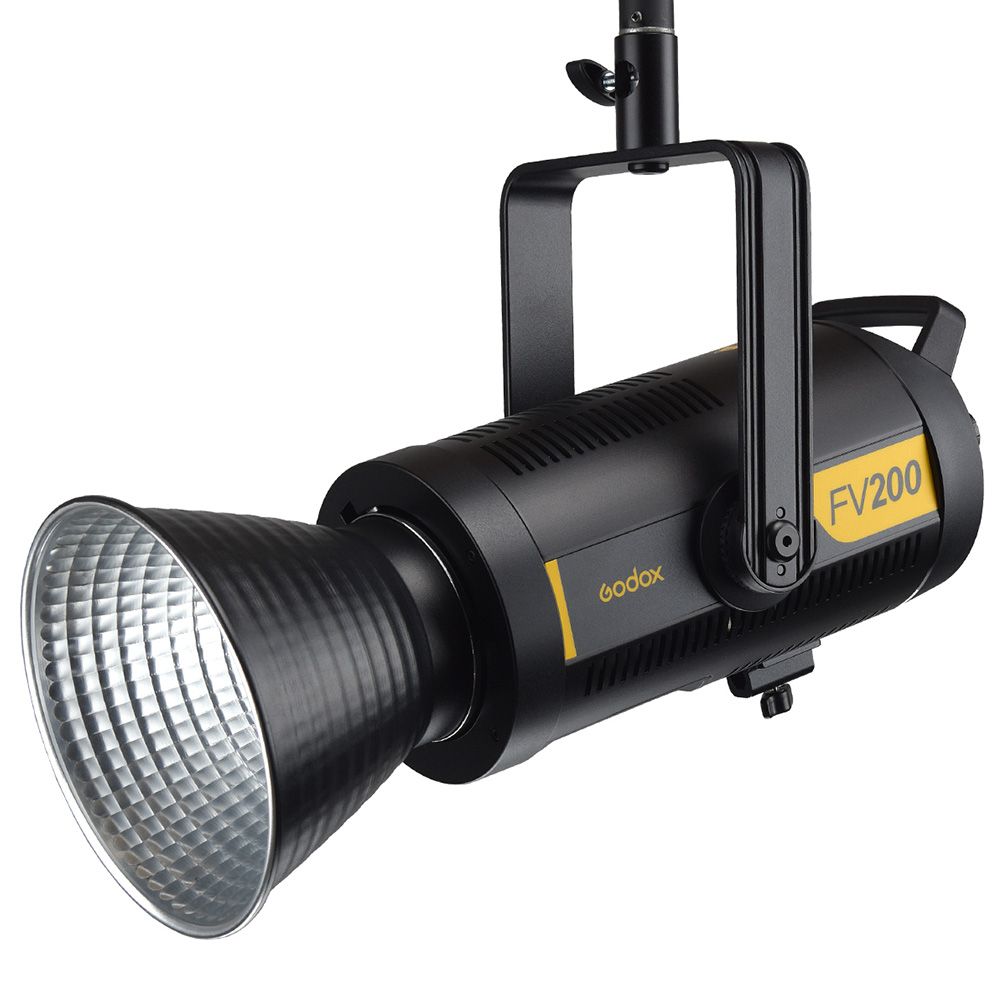 In flash mode the FV200's color temperature is again, 5600K and power can be adjusted from 1/8 to full power. It supports High Speed Sync at speeds as short as 1/8000 second. While you can make these changes in continuous or flash mode locally on the fixture, you can also make them at a distance using the included 32-channel, 16-group radio remote control. It's compatible with Canon, Nikon, Sony, Fujifilm, Panasonic, Olympus, and Pentax Cameras. The FV200 is ready for worldwide use via its 100 to 240 VAC power supply. A standard Bowens-mount reflector with an umbrella channel is also included.