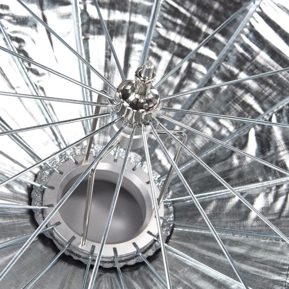 The Parabolic Softbox AD-S85S for AD400pro/AD300 ML Series LED Lights measures 85cm and allows you to choose between a silver or gold softbox (umbrella) by including both. If you want a cool-toned look with snappy contrast, attach the silver reflector inside the umbrella. If you want a soft, warm rendition attach the gold reflector. The removable front diffuser makes it easy.