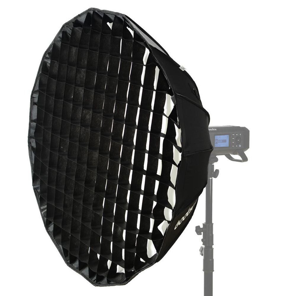 The AD-S85S shape has a deep design to output the soft light you're seeking but with a sharp falloff to make feathering and edge-lighting simple. The fabric grid thwarts spill light and gives further directional control necessary for selective lighting.