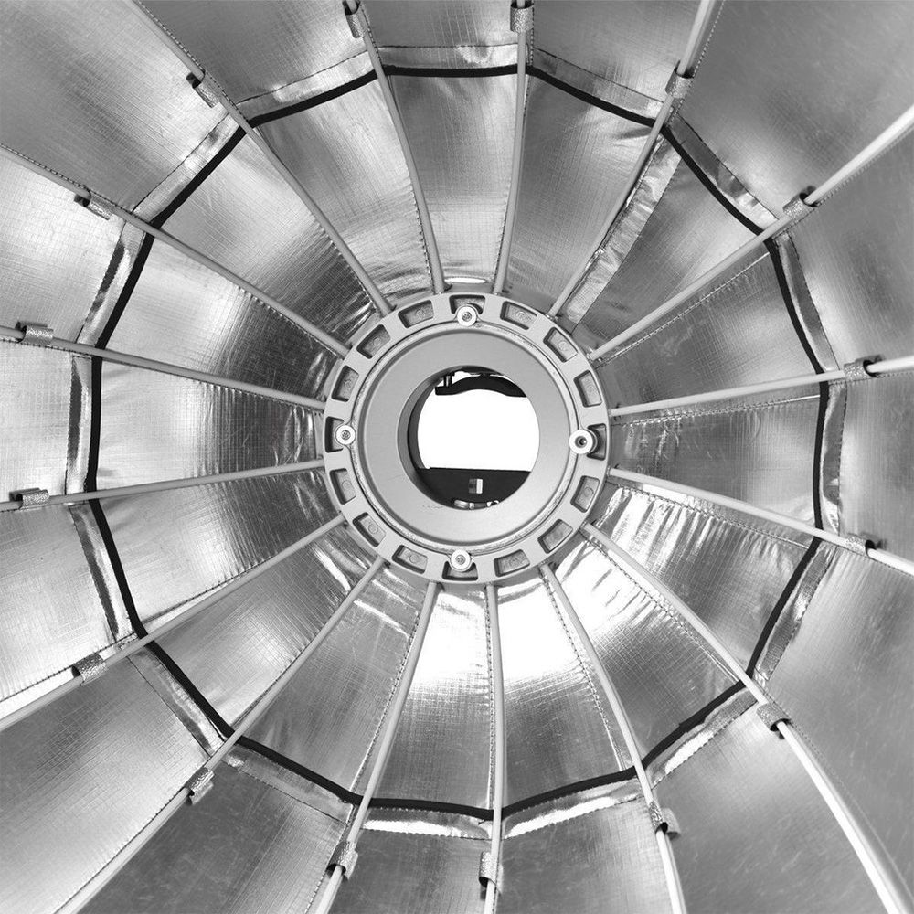 Ideal for portraits or fashion, P120L is a 16-sided light-shaper that offers focused, soft output with a punchy, crisp edge that lends dimension and detail to your subject as well as natural-looking catchlights in their eyes. The unique depth of the modifier renders significant falloff at the field edge and therefore an enhanced degree of directional control, decreased spill light, and easy feathering. The Parabolic Softbox comes with removable outer and inner diffusers that can be used together, one at a time, or not at all to achieve different levels of contrast. A Bowens Type-S speed ring is included and carry bag is included for storage and transport.