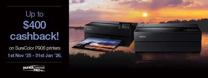 Epson raises the bar again with its cutting-edge design of the new high quality A2+ photo printer, the Epson SureColor SC-P906™, which delivers professional features including high-capacity cartridges with an expanded colour range, new printing modes, networking and wireless connectivity, large touchscreen display, plus advanced media handling. UltraChrome® PRO10 pigment ink, combined with Epson's innovative MicroPiezo® print head, enables the SC-P906 to produce gallery-quality black & white output, plus improved vivid colour prints with breathtaking blues and violets thanks to the new Violet ink that is now on board. The Epson SureColor P906 also has dedicated lines for all colours so now you do not have to wait to switch between the Photo / Matte Black ink carts saving you time and keeps you printing more efficiently. The Epson SureColor P906 is setting new benchmarks in A2+ professional photographic printing, delivering the highest D-max to date and unsurpassed black and white photography along with outstanding colour exhibition quality prints. The SC-P906 is 30% smaller than its predecessor and is ideal for amateur and semi-professional photographers and for any business that has a regular requirement for high-quality colour presentations.