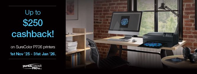 Epson raises the bar again with its cutting-edge design of the new high quality A3+ photo printer, the Epson SureColor SC-P706™, which delivers professional features including high-capacity cartridges with an expanded colour range, new printing modes, networking and wireless connectivity, large touchscreen display, plus advanced media handling. UltraChrome® PRO10 pigment ink, combined with Epson's innovative MicroPiezo® print head, enables the SC-P706 to produce gallery-quality black & white output, plus improved vivid colour prints with breathtaking blues and violets thanks to the new Violet ink that is now on board. The Epson SureColor P706 also has dedicated lines for all colours so now you do not have to wait to switch between the Photo / Matte Black ink carts saving you time and keeps you printing more efficiently. The Epson SureColor P706 is setting new benchmarks in A3+ professional photographic printing, delivering the highest D-max to date and unsurpassed black and white photography along with outstanding colour exhibition quality prints. The SC-P706 is 30% smaller than its predecessor and is ideal for amateur and semi-professional photographers and for any business that has a regular requirement for high-quality colour presentations.