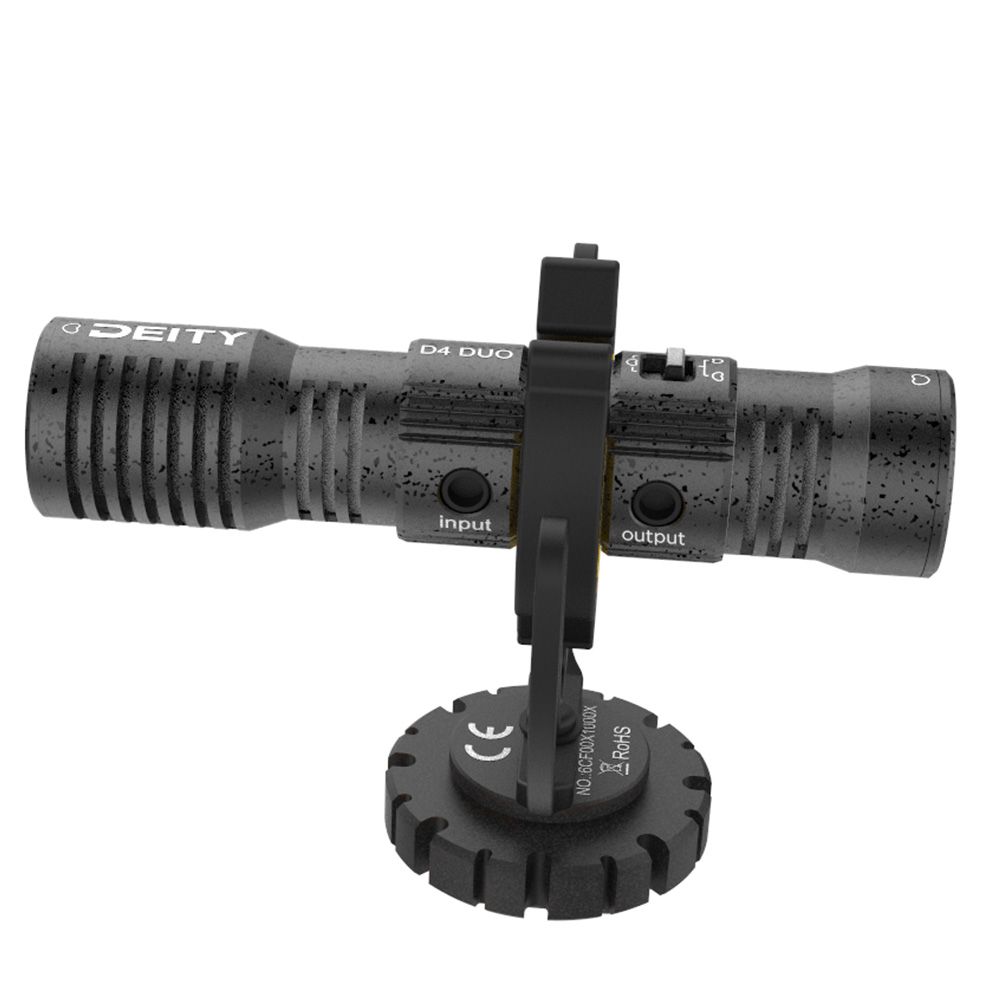The V-Mic D4 DUO lets you capture the story you want to tell from every angle. With its unique dual-capsule design, the D4 DUO allows you, for the first time ever, to record the audio coming from behind the camera in full fidelity. No longer will your interview questions sound distant and muffled. No longer will you have to rotate your microphone when you want to narrate something you are showing your audience. •Dual Cardioid Pickup Patterns •Low noise circuitry •AUX Input for lavaliers microphones or wireless receivers •Rycote® LYRE shockmount •1/4″ and 3/8″ threaded mounting options Super Lightweight The D4 DUO weighs only 40 grams which makes it one of the lightest compact camera microphones on the market. Now you can add high quality audio to your camera setup without having to weigh it down. AUX 3.5mm Input The D4 DUO also has a very special feature that exemplifies our company motto of “Do More. Carry Less.” Its 3.5mm AUX input bypasses audio from the rear capsule and sends it to the right channel of your camera. No longer do you need to carry around bulky camera mixers or hard-to-find stereo splitter cables. All of that is built into the microphone. Simply flip the switch to stereo and plug in your lavalier or wireless receiver. This is perfect for when you want to capture an interview with someone but also need to record the sounds of the environment on a separate track that you can use to balance the whole soundscape of the scene.What’s Included In The Box: