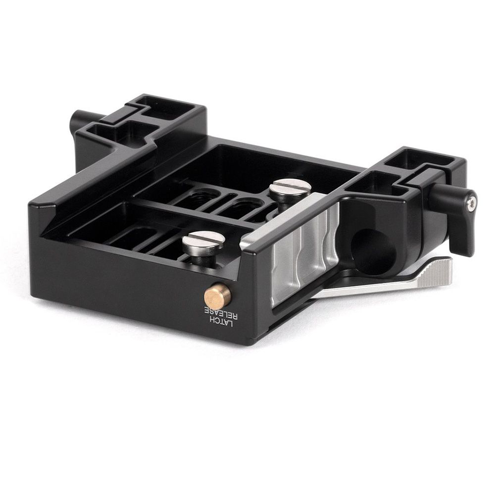 Quick Release Bridgeplate (15mm Studio) is an ARRI standard bridgeplate with 15mm studio offset spacing (rods spaced 100mm center to center). The new design allows the bridgeplate to drop down and lock on, anywhere along an ARRI standard dovetail.