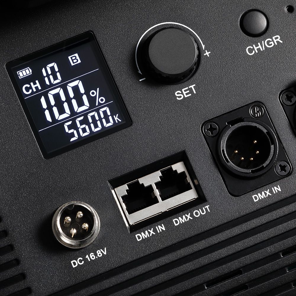 The Godox LED1000Bi II Bi-Color DMX LED Video Light is a video light that offers a user-selectable color temperature of 3300 to 5600K with a ±300K variance. Dimming settings range from 0% to full power and can be adjusted using the video light's on-board LCD panel or by its wireless remote which has a range of up to 65.6'. For enhanced versatility, the LED1000Bi II Bi-Color DMX LED Video Light also features connectivity for DMX controllers.