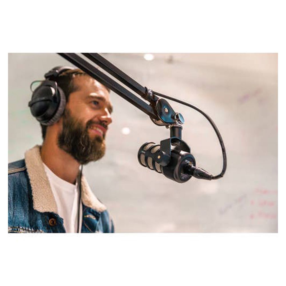 The PodMic is a broadcast-quality dynamic microphone optimised for podcasting. It has a rich, balanced sound, with an internal pop filter to minimise plosives and internal shockmounting to reduce vibration.