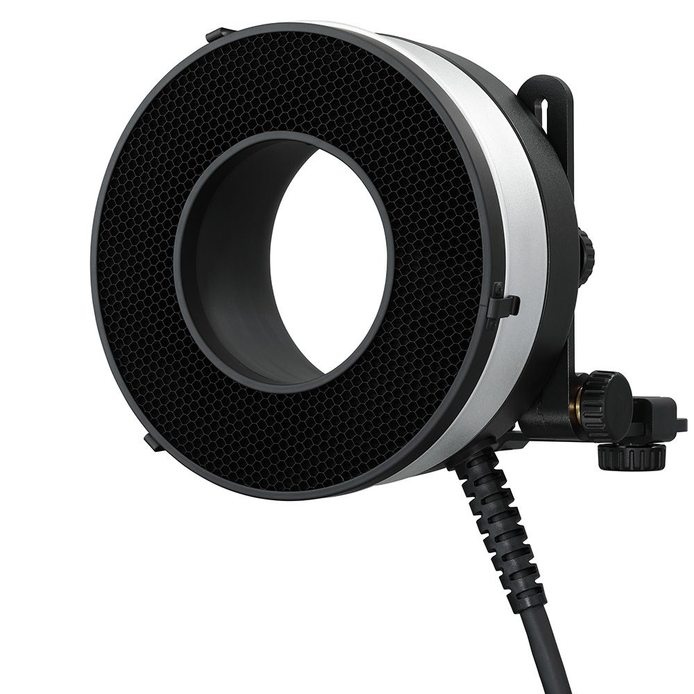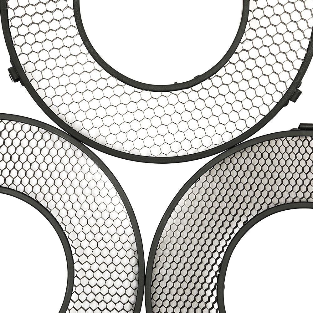 Honeycomb Grid for AD1200 alters the shape and light output of the reflector by tunnelling the light forward into a narrower beam. The grid offers slightly increased contrast, directionality and spill light control. It's an ideal tool for achieving Rembrandt-like lighting effects.