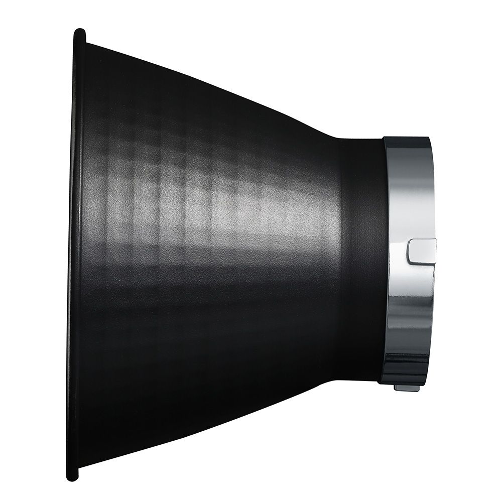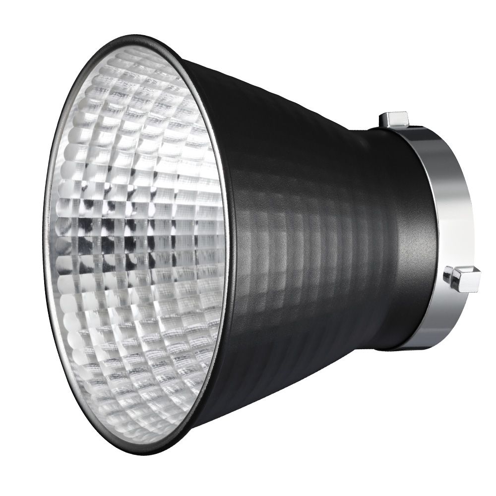The 7 Inch RFT-19 Reflector from Godox is a modifier with a 30° beam spread and a faceted, polished silver interior to maximize output. The reflector has a Bowens mount that not only fits Godox LED heads (see compatibility) but also products from the many manufacturers that use this popular mount.