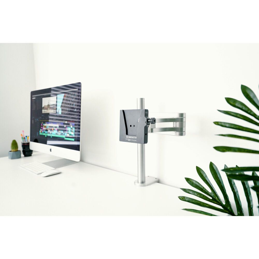 Whether you are mounting a monitor on your desk in the home office, setting up a mobile workstation on a production cart, or setting up a video village, with the INOVATIV QR System, your monitor is mounted, locked and secure in just a few seconds.