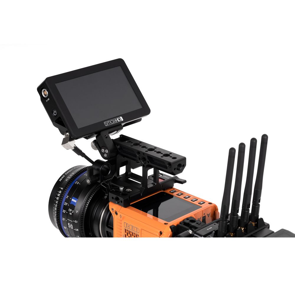 Included Top Handle slides into ARCA slot and leaves camera control screen easily accessible. Shoe mount on top can hold on-camera lights and microphones and side 15mm opening can hold included monitor arm or UVF Mount V2. 1/4-20 and 3/8-16 ARRI accessory mount in several places and 15mm lightweight rod bracket on front for attaching lens motors and more.