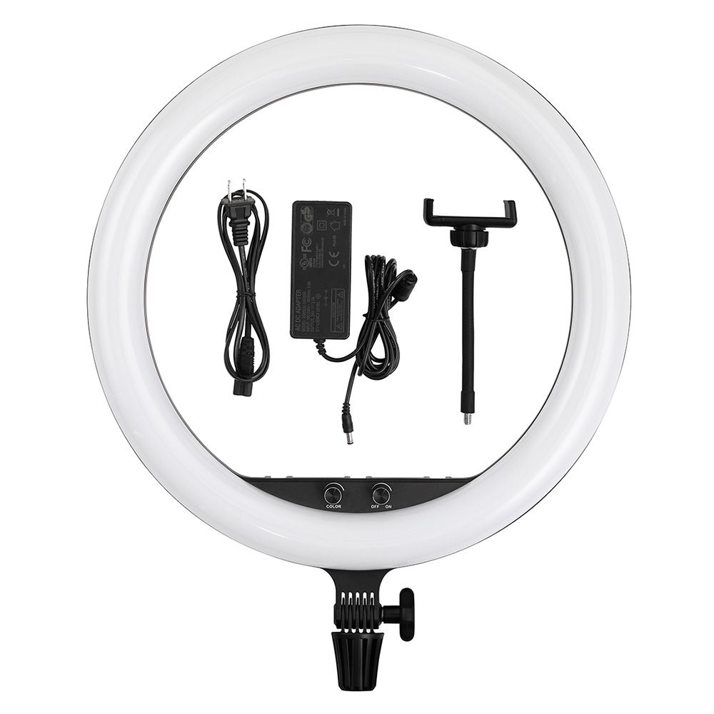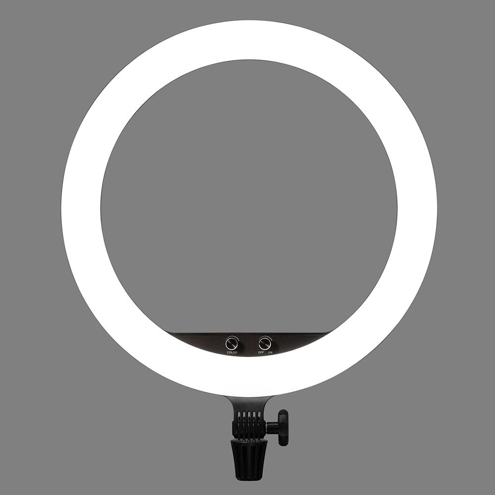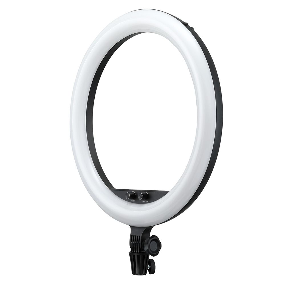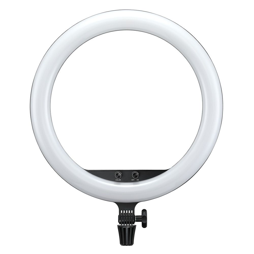 The LR150 Bi-Color LED Ring-Light features a distinctive-shaped light fixture with a color temperature that's variable from 3000 to 6000K to match other fixtures, ambient light conditions, or just for creative expression. The light is mountable to an optional grip head or stand, allowing you to shoot through it for a silky smooth near-shadowless effect that is flattering to your talent's complexion. Ideal for selfies, a smartphone holder is included. A bonus is the unique circular shape of the light reflected in your subject's eyes.