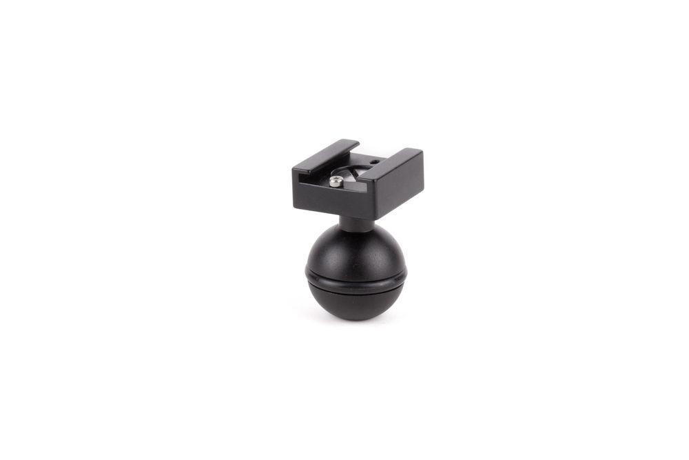 Ultra Arm Ball (Female Hot Shoe) is a component of our Ultra Arm lineup which accepts any shoe mount accessory and has a 25mm (1 inch) ball on the end. Ideal for use with Canon C300, C500, and C300mkII LCD units, on camera lights, microphone shock mounts, and many more items. This can be combined with our Double Ball Clamp and other Ultra Arm accessories to build custom configurations!