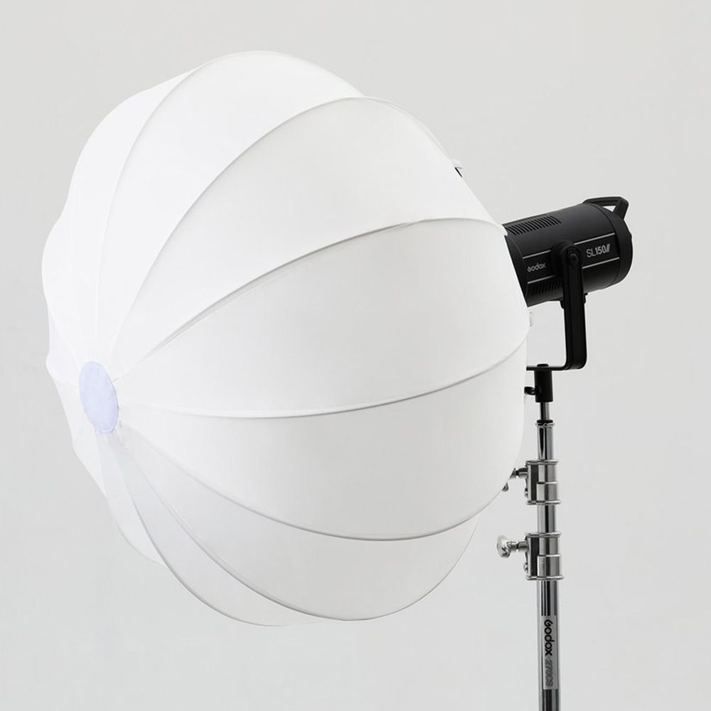 Ideal for use overhead or to raise the ambient illumination level, the 85cm diameter Collapsible Lantern Softbox has a omni-directional quality of light. Durable materials and has accessories such as an optional skirt set to control the 270° beam spread. The Lantern has a Bowens mount that fits Godox lights such as the SL150 II, UL150, and VL series, but it is also compatible with many other lights that use this popular mount.