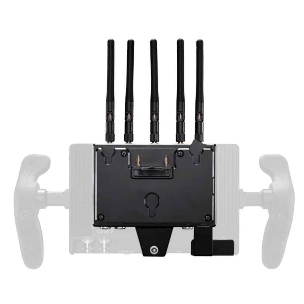 RX Module easily attaches to the back of Cine 7 and 702 Touch. Includes a Gold Mount Battery Plate capable of battery power pass-through to both RX Module and monitor.