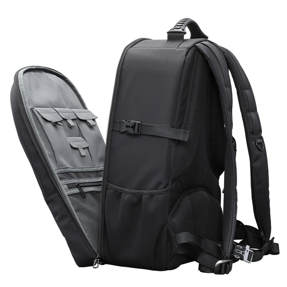 Front compartment for a max 15-inch laptop; With side pockets to carry a small light stand and small softbox; With 4 lid pockets and a bottom mesh pocket to add extra storage and organizational capability; Carry your photo gear in one bag.