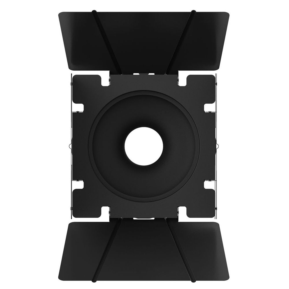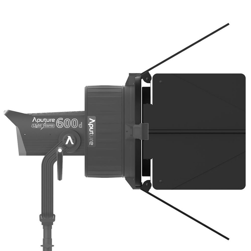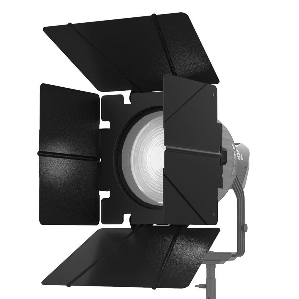 The 25cm F10 Barndoors for the F10 Fresnel Attachment from Aputure offer a means to control the 15 to 45° beam spread range of the Fresnel. Simply swing one or more leaves into the beam path to light areas you want and to keep light from areas you don't want illuminated. The 8-leaf design gives even greater control than 4-leaf versions and provides clean cuts of light.