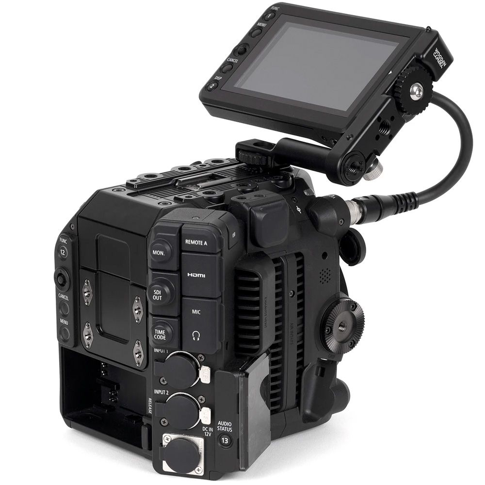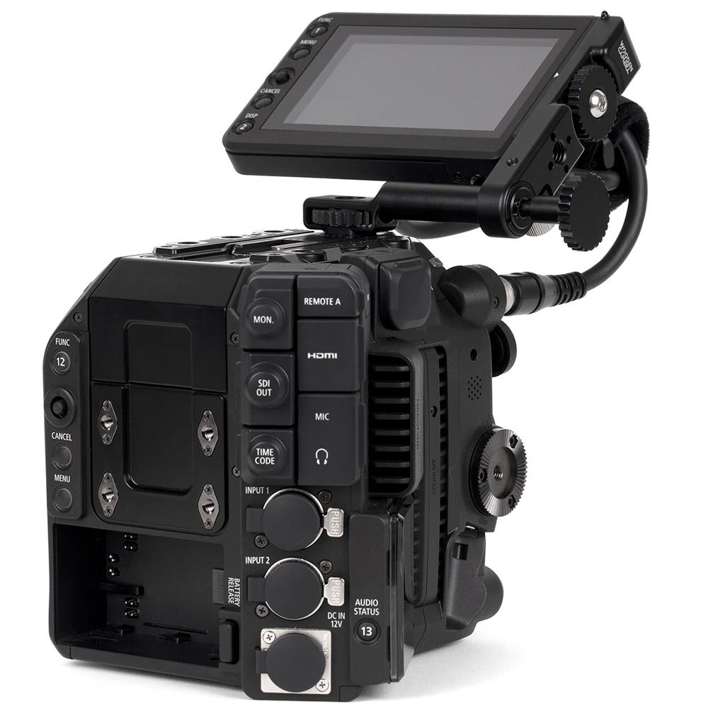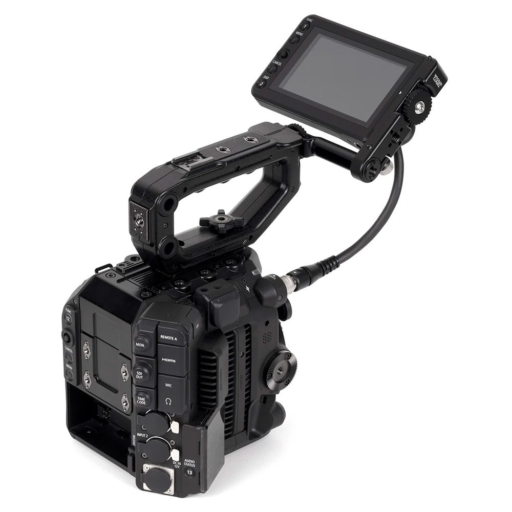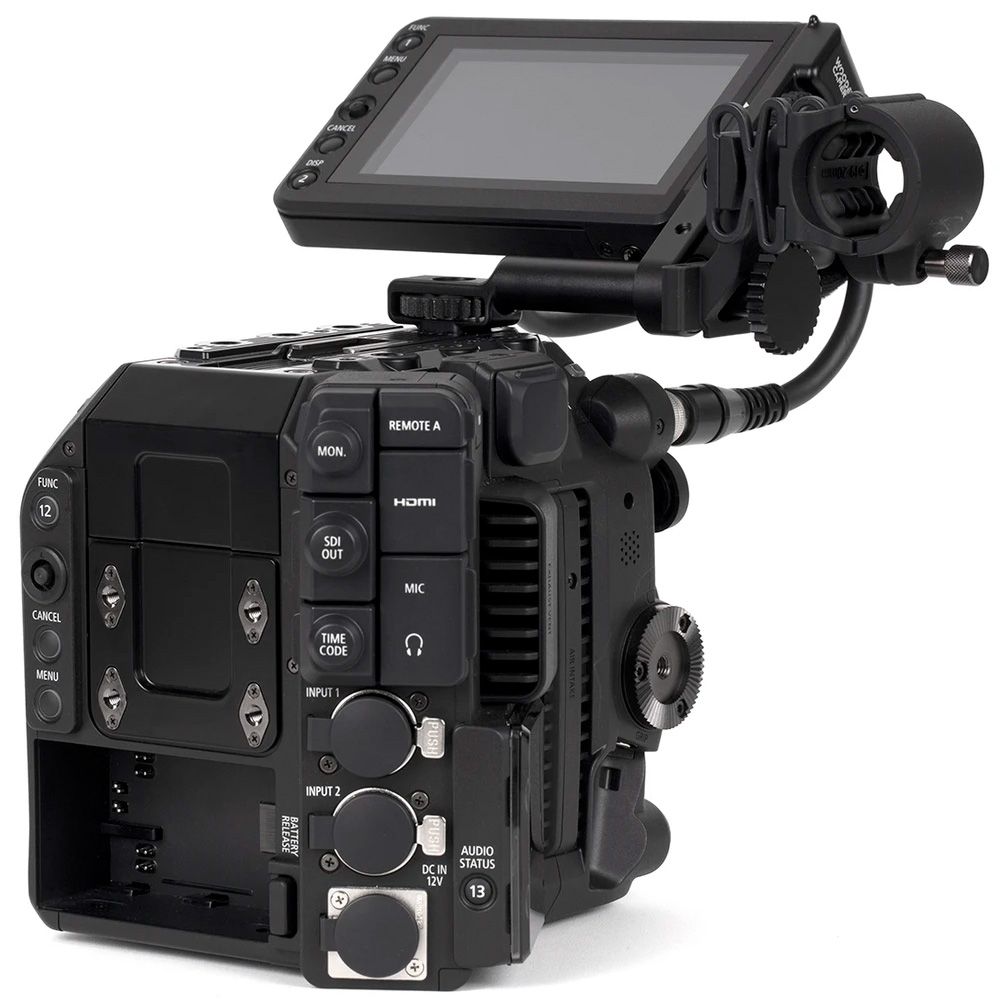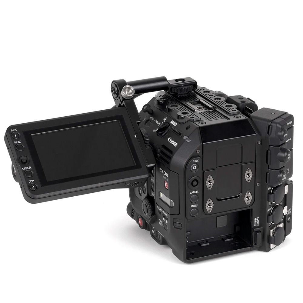 Mini Monitor Hinge (Canon C300mkiii, C500mkii) attaches the Canon LCD to the camera body or top handle via a captured ¼”-20 screw with a grooved mounting surface for additional support. The monitor arm features a â ”-16 threaded hole for attaching accessories. The end of the monitor hinge rod is threaded to fasten the Canon microphone mount with the included Microphone Screw.
