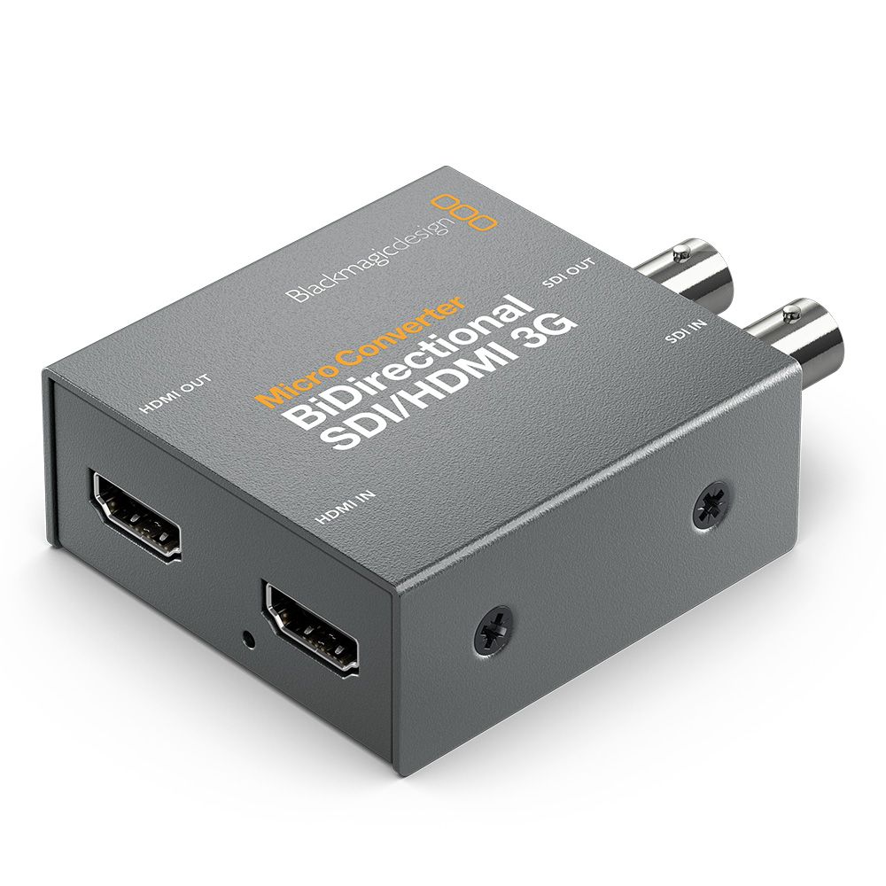 Easily combine SDI and HDMI components in your video setup with the Micro Converter BiDirectional SDI/HDMI 3G. This compact bidirectional converter can simultaneously convert SDI to HDMI and vice versa, even when using different standards, and it supports resolutions up to DCI 2K in SDI and 1080p60 in HDMI. It also offers camera control conversion for Blackmagic HDMI cameras like the BMPCC 4K or 6K, enabling you to use them with an SDI-based live switcher. The Micro Converter BiDirectional SDI/HDMI 3G features HDMI timecode support, SDI re-clocking for stability over long cable runs, support for a wide range of pro broadcast resolutions including cine-style 48 fps, and both HDMI and SDI embedded audio input and output.
