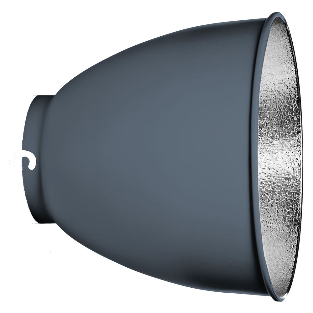 This reflector produces a much more concentrated beam of light. It is used whenever maximum light output is the major priority. It is well suited to bouncing light off ceilings, sports applications etc.