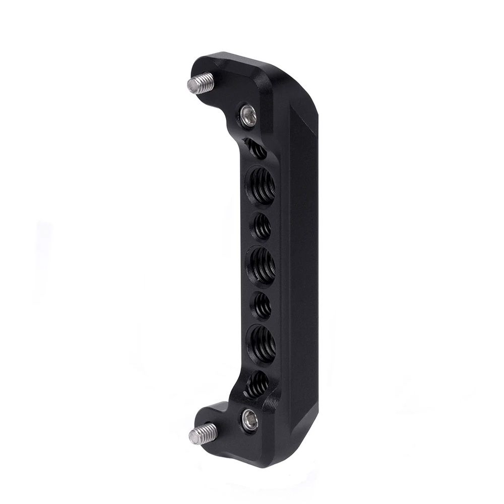 The Wooden Camera Side NATO Bracket for RED KOMODO attaches directly to either side of the camera and provides a NATO rail for accessories such as handgrips. It also features built-in spring-loaded pins on the top and bottom to prevent your NATO accessory from accidental removal. Additionally, 1/4"-20 and 3/8"-16 mounting threads