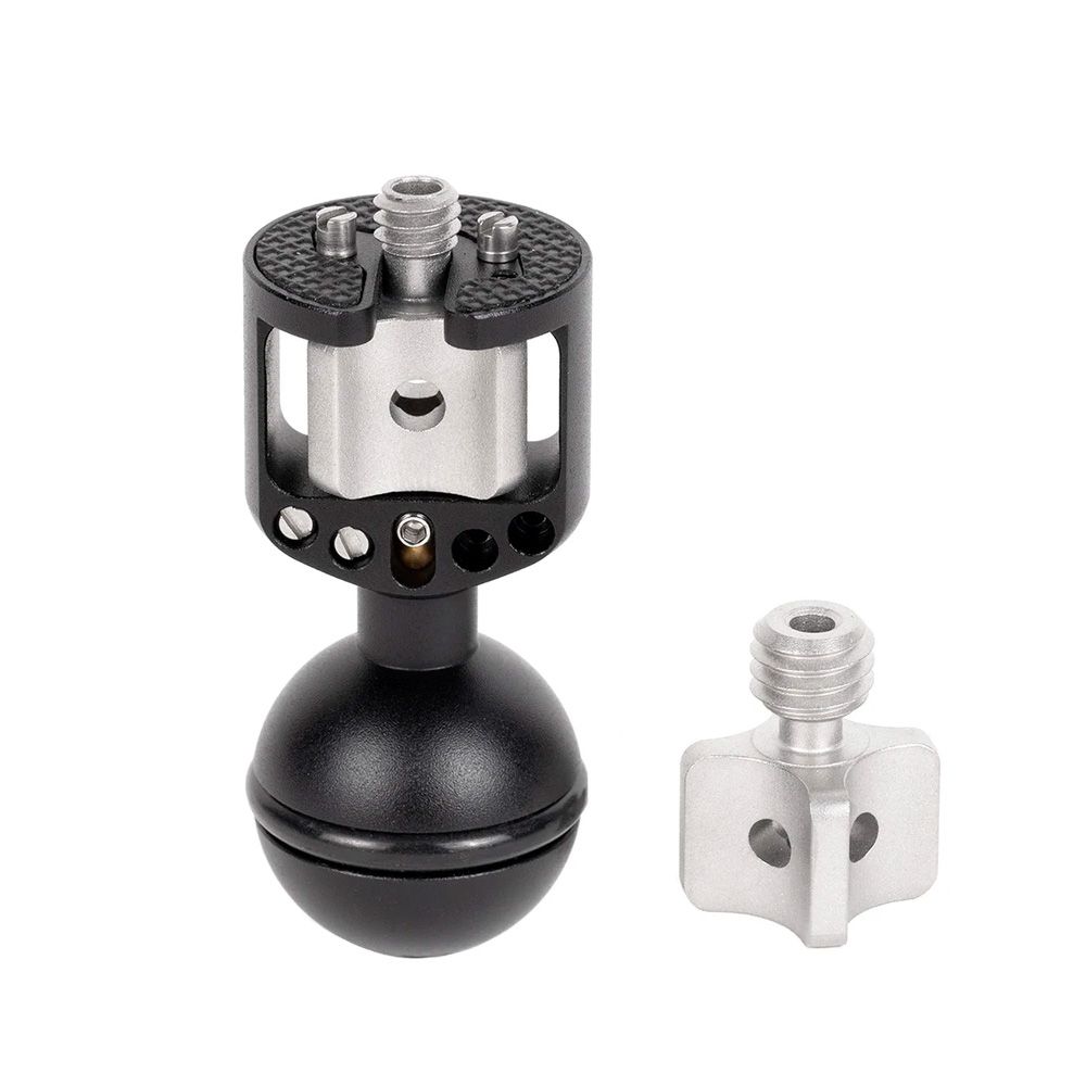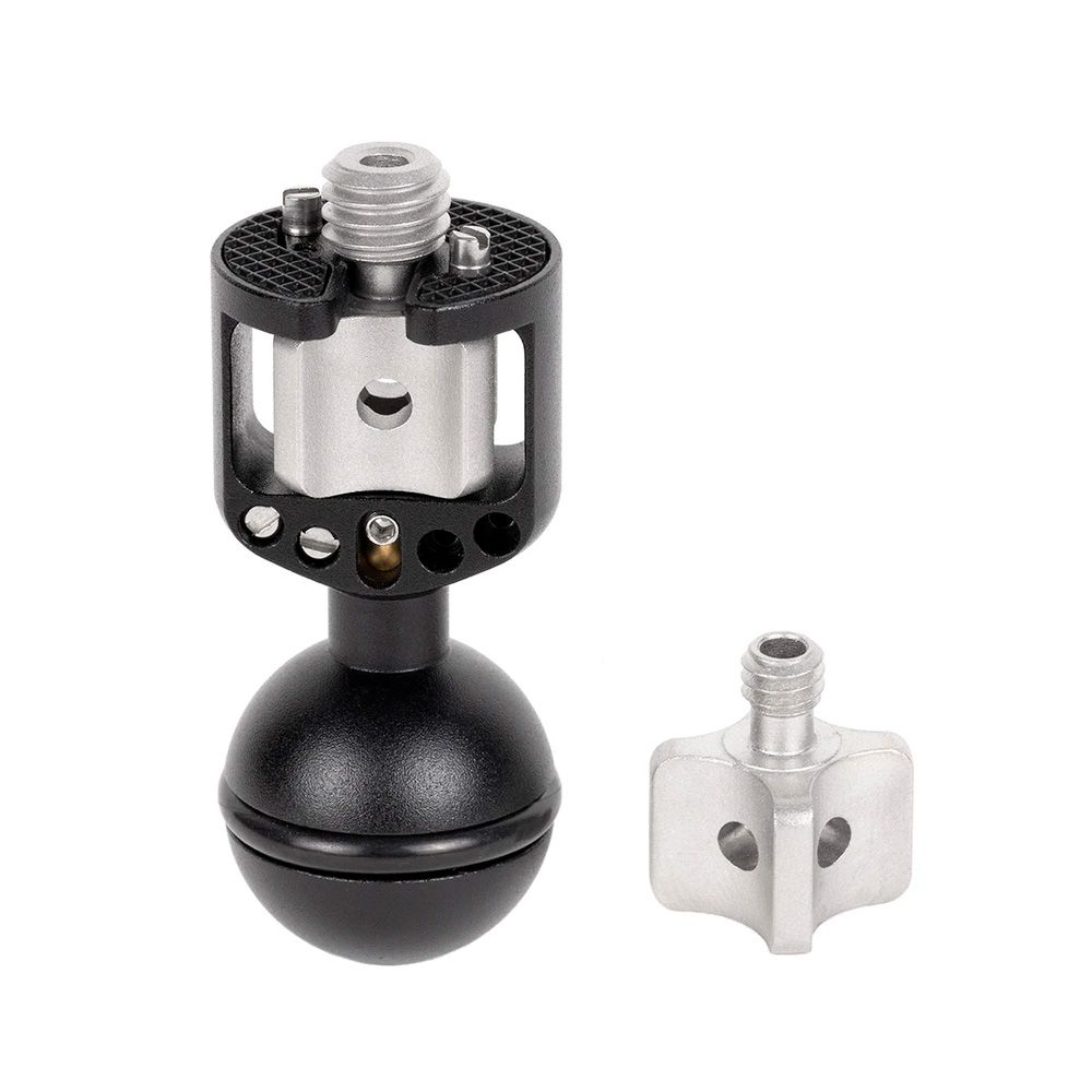 Universal Ultra Arm Ball (Combo ¼-20 &3/8-16) is a component of our Ultra Arm lineup which has interchangeable ¼-20 and 3/8-16 screw knobs, non-slip rubber pad, and a 25mm (1 inch) ball. Also included are four locating pins - located in the Ultra Arm base - that can be installed turning it into a SmallHD or ARRI accessory mount compatible device. This can be combined with our Double Ball Clamp and other Ultra Arm accessories to build custom configurations.