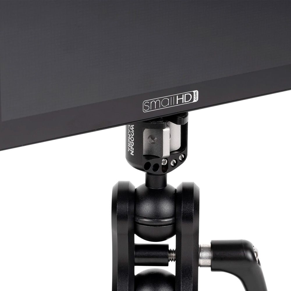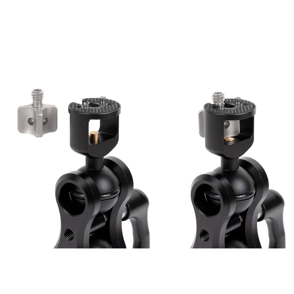 Easily swap from ¼-20 Ultra Ball Knob to â Â-16 Ultra Ball Knob by depressing the brass pin and sliding out. Four locating pins are included in the Ultra Arm base and can be installed in either SmallHD or ARRI Standard spacing for securely mounting accessories.