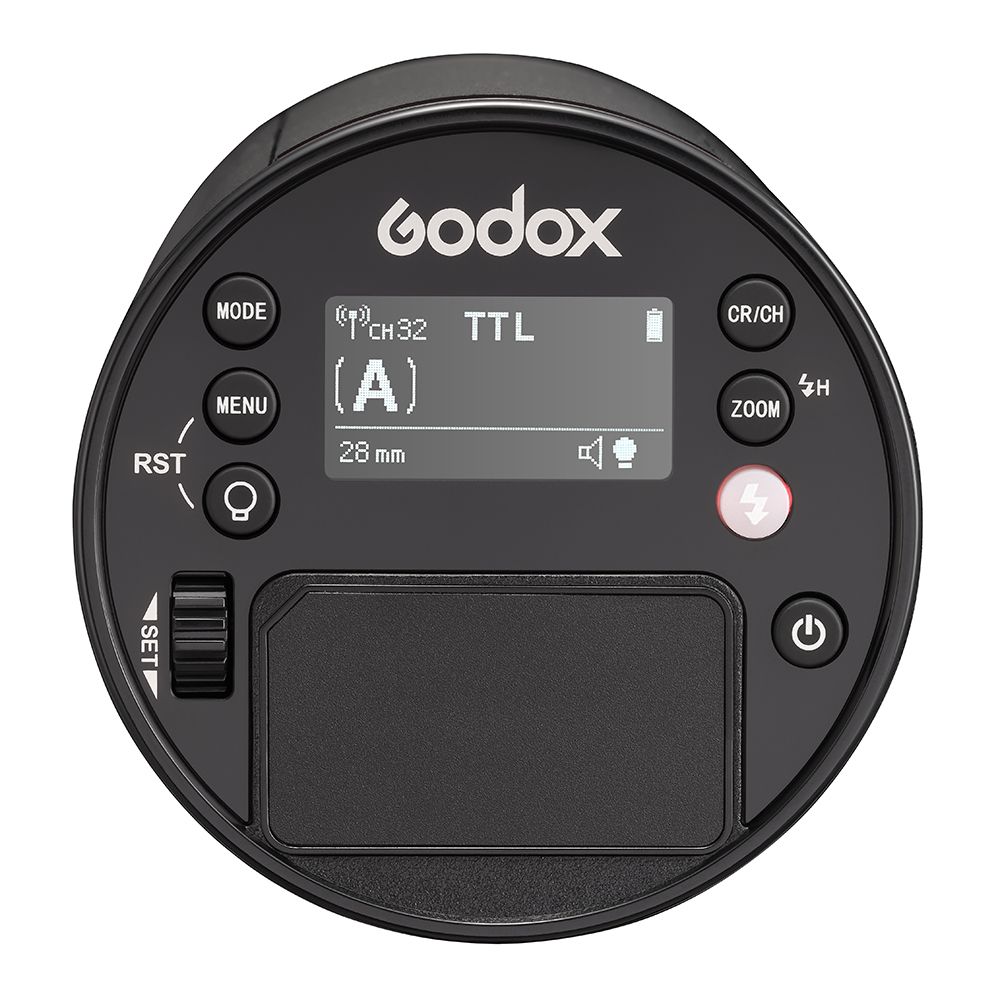 The AD100pro has impressive core features such as 100Ws of power adjustable in nine steps from 1/256 to 1/1, recycling times from 0.01 to 1.5 seconds, and short flash durations. The AD100pro has manual, auto, and stroboscopic capability. Manual mode outputs the user's choice of power, modelling light, and first or second curtain sync. Multi-mode controls the stroboscopic rate up to 90 times (90 Hz). Optional wireless transmitters with 32-channel and four groups system control flash mode, first and second curtain sync, High-Speed Sync up to 1/8000 second, power level, and modelling lamp at distances up to 328'. Firmware updates are obtainable on the Godox website.