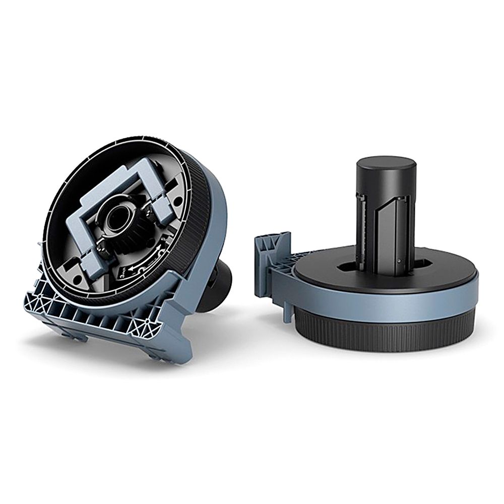 Roll media adaptor for use with selected T series printers. One set is supplied with the printer to allow mounting of roll media. Additional sets can be purchased to enable easy storage and quick loading/unloading of multiple media types & sizes.