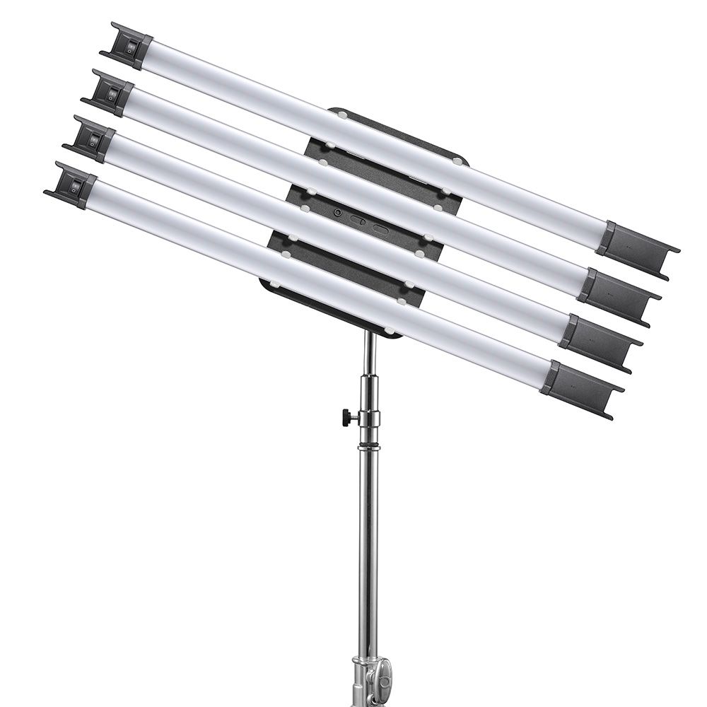 This Bracket will support 4x TL60 and TL120 LED tube lights. The bracket has a receiver for a light stand or other supports.