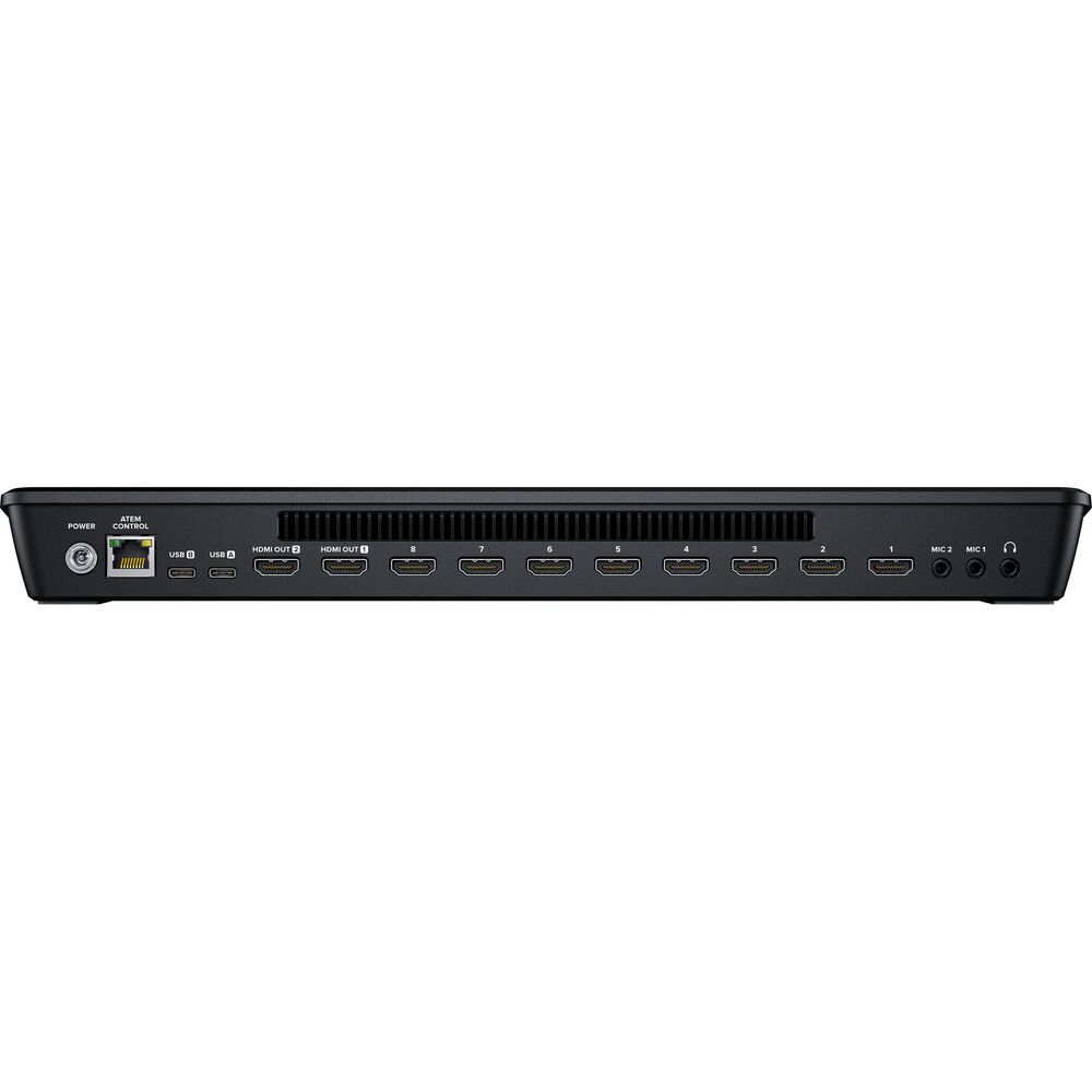 ATEM Mini Extreme is an 8-input live production switcher for live streaming. It features an integrated control panel and has advanced broadcast features. In addition to live streaming using RTMP protocols, you can also output your program as if it was a webcam over USB. This versatile switcher's eight independent HDMI inputs accept all popular HD signals up to 1080p60. Each input has discrete frame rate and format converters, and it supports re-syncing for seamless switching between a variety of pro and consumer cameras, game consoles, and computer feeds.